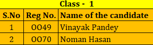 ENTRANCE TEST RESULT CLASS I - 2026 - 27